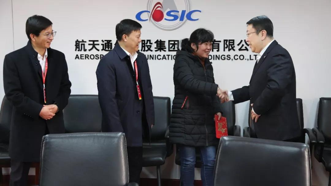 1月24日,集團公司黨組成員、副總經(jīng)理陳國瑛走訪慰問航天通信困難職工,為困難職工送去了組織的關懷、新年的祝福和慰問金。航天通信黨委書記、董事長余德海,總裁、黨委副書記崔維兵陪同。