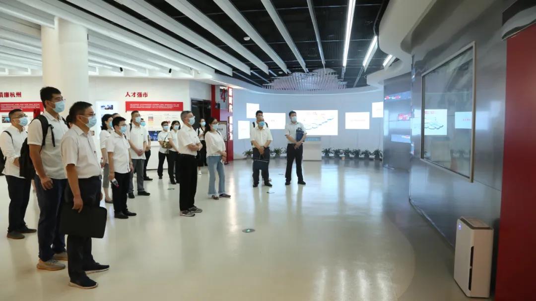 隨后,航天通信一行來到了黨建宣傳展示廳。通過觀摩展示墻的圖片、影像等信息回顧了習近平總書記對杭州的深情囑托和殷切期望,學習了解了杭州在新時代新思想指引下的新實踐、新作為、新風采、新成就,駐足聆聽了陳立群、孔勝東、吳菊萍等感人故事,一段段優秀事跡深深觸動了在場黨員。