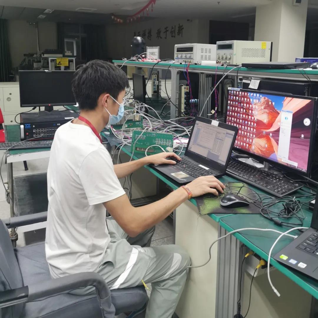 項目組軟硬件工程師黃仁果、梁暉、肖霞、劉鵬飛、李孝富等,為了保障項目外出人員產品聯試的順利進行,與現場人員隨時保持溝通,全力以赴做好技術支持工作。為了保證系統聯試進度不受影響,他們經常以實驗室為家,通宵達旦、探索攻關,將聯試過程中出現的故障現象在實驗室反復推敲,第一時間拿出優化解決方案,為總體單位提供了良好的技術支持與服務,他們用一個又一個電訊號,一行又一行代碼書寫著無悔青春。