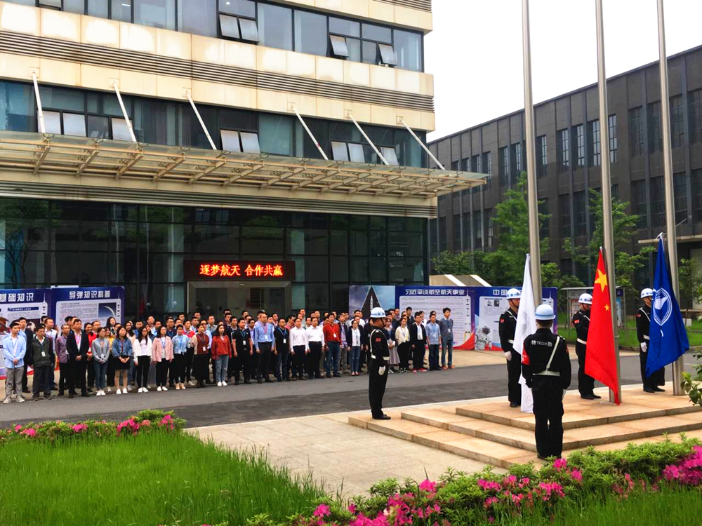 成都航天圍繞“逐夢航天 合作共贏”主題舉行升旗儀式。公司領導班子、中層干部、團員青年、職能部門全體人員以及部分事業(yè)部、制造部員工約300人英姿颯爽,整齊列隊。在激昂的國歌聲中,五星紅旗冉冉升起,在雄壯有力的《航天科工之歌》中,藍、白色的集團公司司旗隨風舞動,彰顯了我國航天事業(yè)的蒸蒸日上。