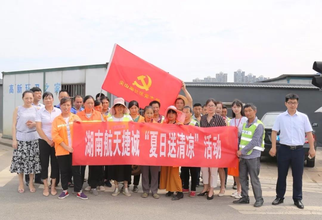 入伏以來,熱浪滾滾,而環(huán)衛(wèi)工人們依然頂著酷暑奮戰(zhàn)在一線,為創(chuàng)造美麗的“星城”貢獻(xiàn)著自己的一份力量。為了給這群辛勤的勞動者們送上一份“清涼”,實(shí)現(xiàn)炎炎夏日里的“微心愿”,8月1日,江蘇捷誠湖南子公司黨支部聯(lián)合尖山湖社區(qū)黨支部,來到高新區(qū)尖山湖社區(qū)的環(huán)衛(wèi)之家進(jìn)行探望慰問。支部的黨員們?yōu)榄h(huán)衛(wèi)工人們送上綠豆、藿香正氣水、板藍(lán)根等解暑物資,同時還帶去了米和油等生活必需品,提醒工人們在高溫天氣要做好防暑降溫措施,并對他們用辛勤汗水換來的干凈整潔的社區(qū)面貌表示由衷的感謝。