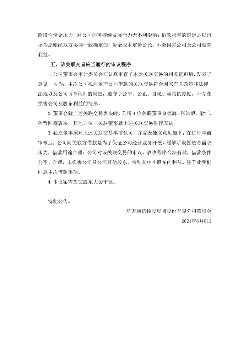 航天通信控股集團股份有限公司關于擬向航天科工資產管理有限公司借款的關聯交易公告