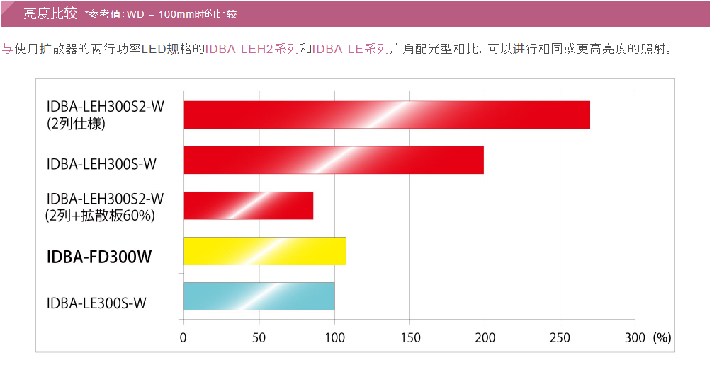 102mm發光面的寬條形照明陣容中的條形照明中最大發光表面寬度(102毫米)的寬條形照明。發光表面寬度為102mm,約為IDBA-LEH系列的 4倍,約為IDBA-HM系列的 2.5倍,并提供高度均勻的照射光,非常適合用于背光應用。