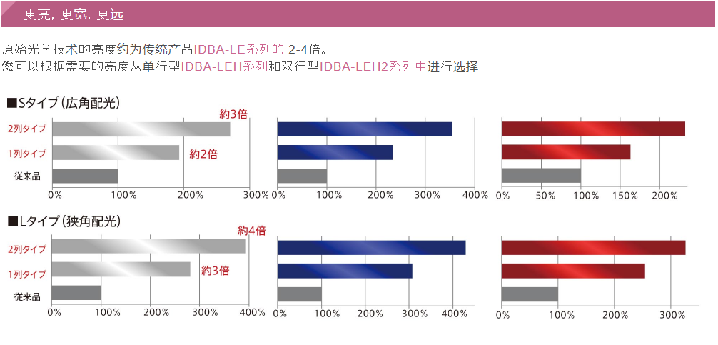 新型條形照明采用獨特的光學技術(shù),是原始IDBA-LE系列的約2至4倍。