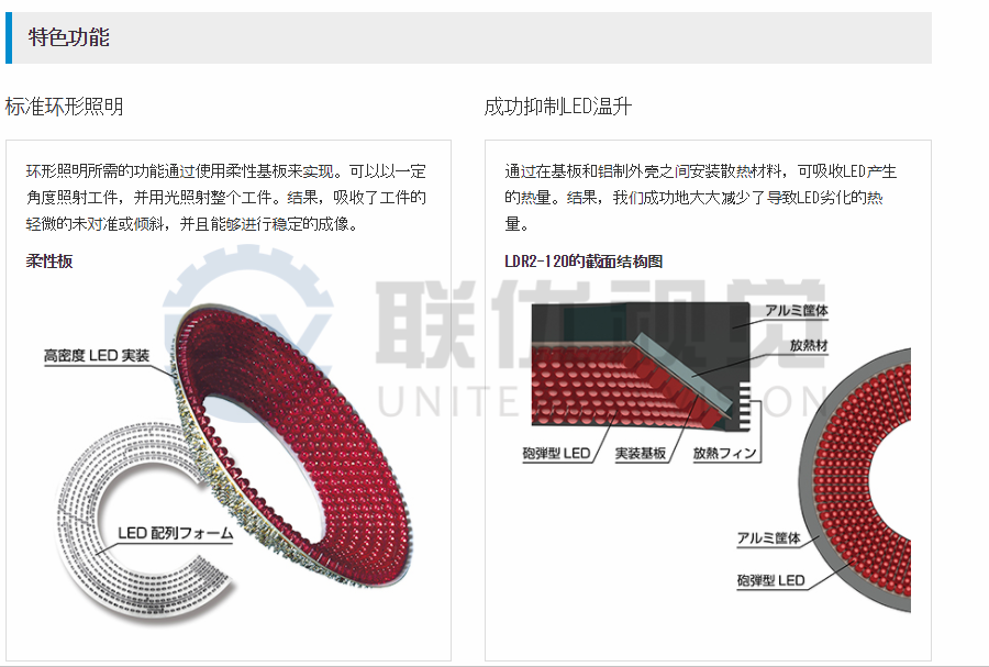 通過使用柔性基板創建任意角度。密集安裝的LED發出光,使直接的光集中向中心。