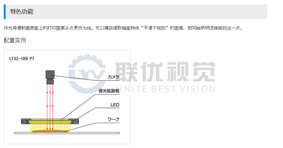 緊湊型外殼中的照明非常適合檢查鏡面物體的不均勻性。可以根據檢查條件選擇兩種間距寬度。1mm型(型號后綴:A),2mm型(型號后綴:B)*本產品是定做的。