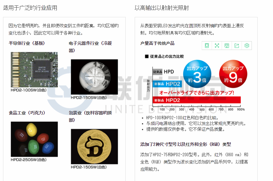 圓頂照明具有“高輸出”,“均勻”和“易于使用”的特性,其亮度是傳統(tǒng)產(chǎn)品的三倍。標(biāo)準(zhǔn)配置有全彩(RGB)和紅外(860nm)類型,并有其他尺寸變化。增強(qiáng)選項(xiàng),例如關(guān)節(jié)支架。