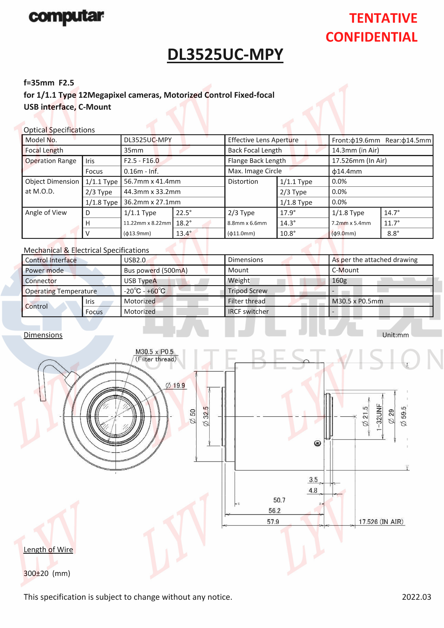 全新電動鏡頭,可通過 USB 供電和控制(適用于 I2C 版本)