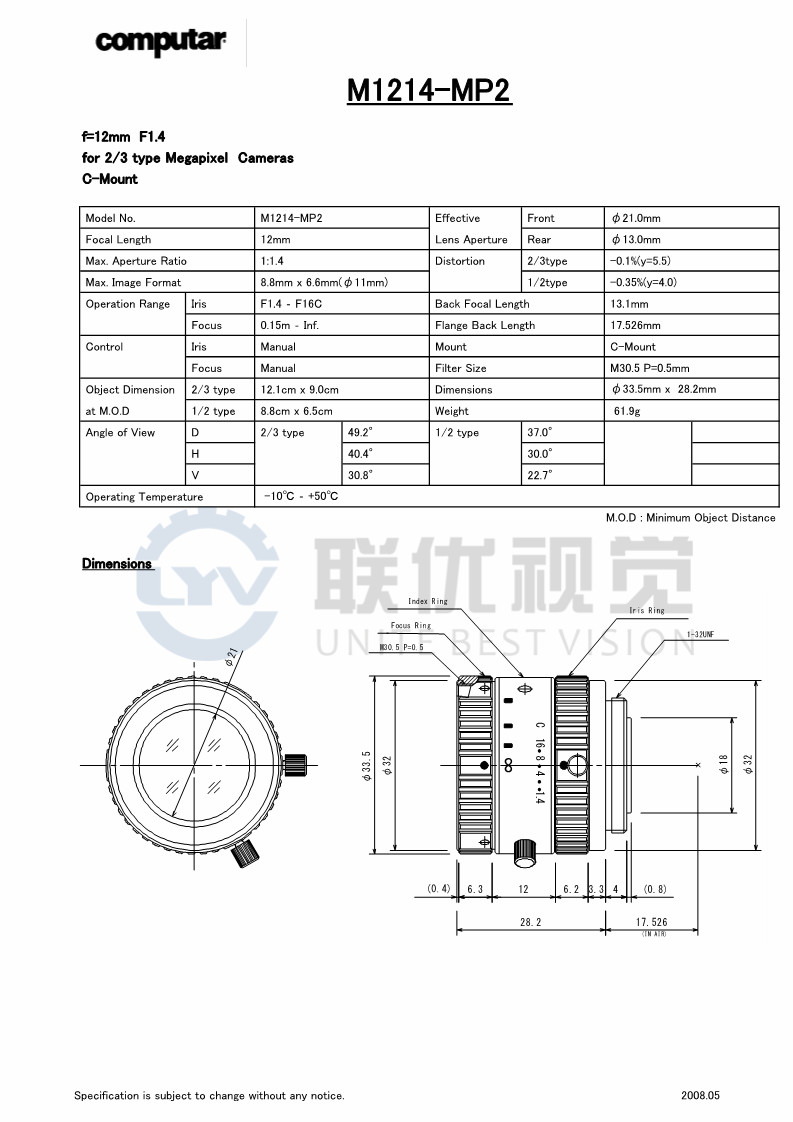 ●具有焦點(diǎn)和光圈鎖定調(diào)節(jié)鏍釘;