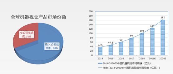 機(jī)器視覺系統(tǒng)通常分為基于PC的視覺系統(tǒng)(工業(yè)相機(jī)+工業(yè)電腦)和基于嵌入式智能相機(jī)(智能相機(jī))的視覺系統(tǒng)。嵌入式智能相機(jī)系統(tǒng)(智能相機(jī))憑借體積小,安裝方便,穩(wěn)定性好等優(yōu)勢(shì)占據(jù)了較大的市場(chǎng)份額。