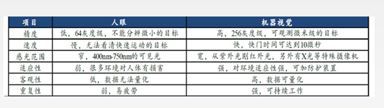 從技術(shù)實(shí)現(xiàn)難度上來說,識(shí)別、定位、測(cè)量、檢測(cè)的難度是遞增的,而基于四大基礎(chǔ)功能延伸出的多種細(xì)分功能在實(shí)現(xiàn)難度上也有差異。因此,與人眼直接檢測(cè)相比,機(jī)器視覺在識(shí)別,定位和測(cè)量方面的優(yōu)勢(shì)較為明顯。隨著深度學(xué)習(xí)和人工智能的發(fā)展,在檢測(cè)方面也逐漸趕上人眼的水平。